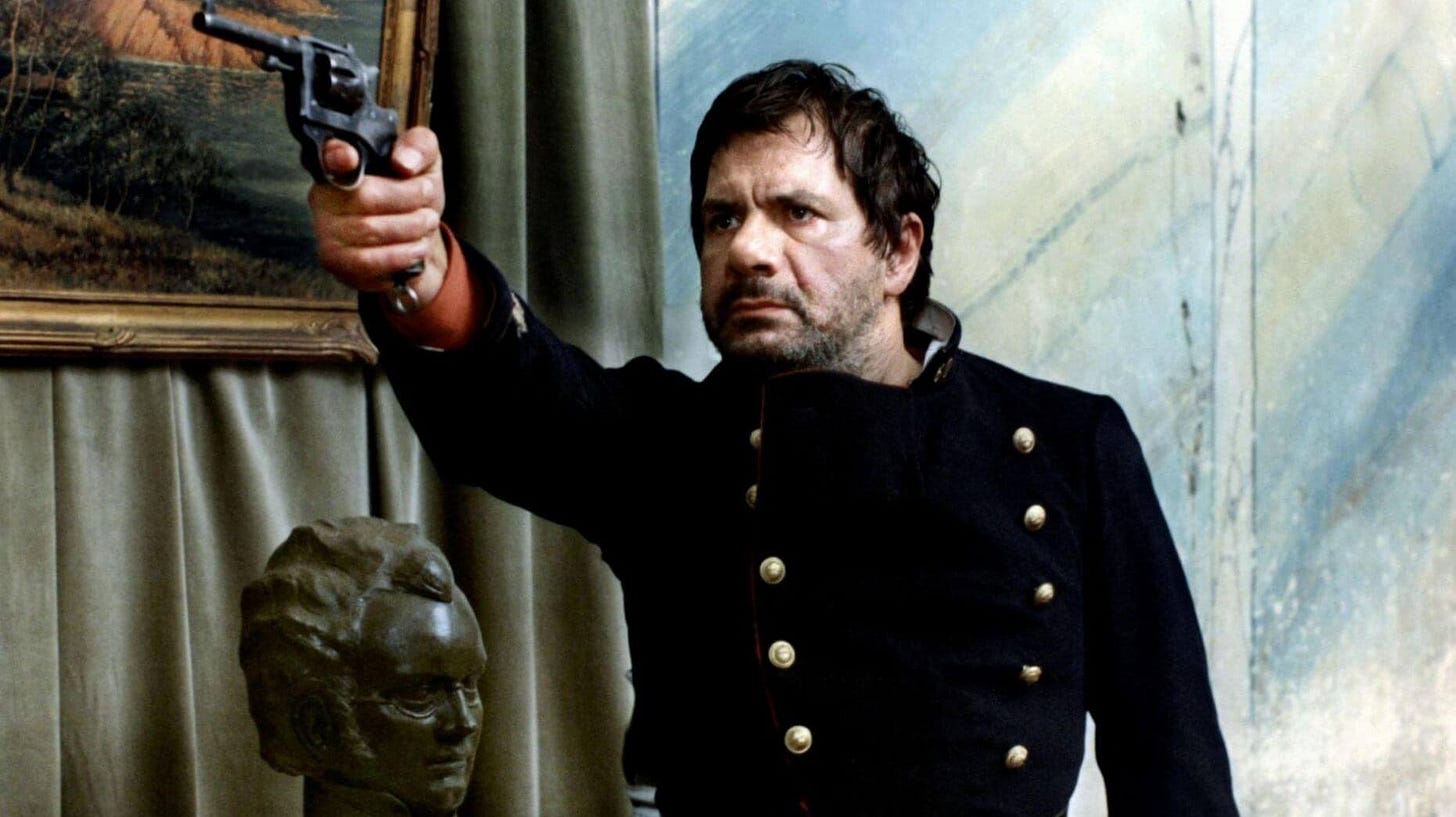 A soldier is released from the army, his psychological scars unexamined, takes a wife and shoots her dead almost as quickly as he coerces her into wedlock. From there he wanders the countryside raping and murdering shepherds both male and female before finally being apprehended and brought to trial. The judge assigned to his case (Philippe Noiret) now has to decide the fate of a man whose sentencing depends on whether or not he is deemed insane. As a judicial matter it has a great effect on Noiret’s future career, while the accused is made a symbol of late nineteenth-century French social justice considering the hard knocks his life endured before he snapped and became a vicious killer. Lots of intelligent philosophizing that, thanks to Tavernier’s exquisite direction, never feels dry or self-important. Huppert appears in an early role as Noiret’s mistress.
