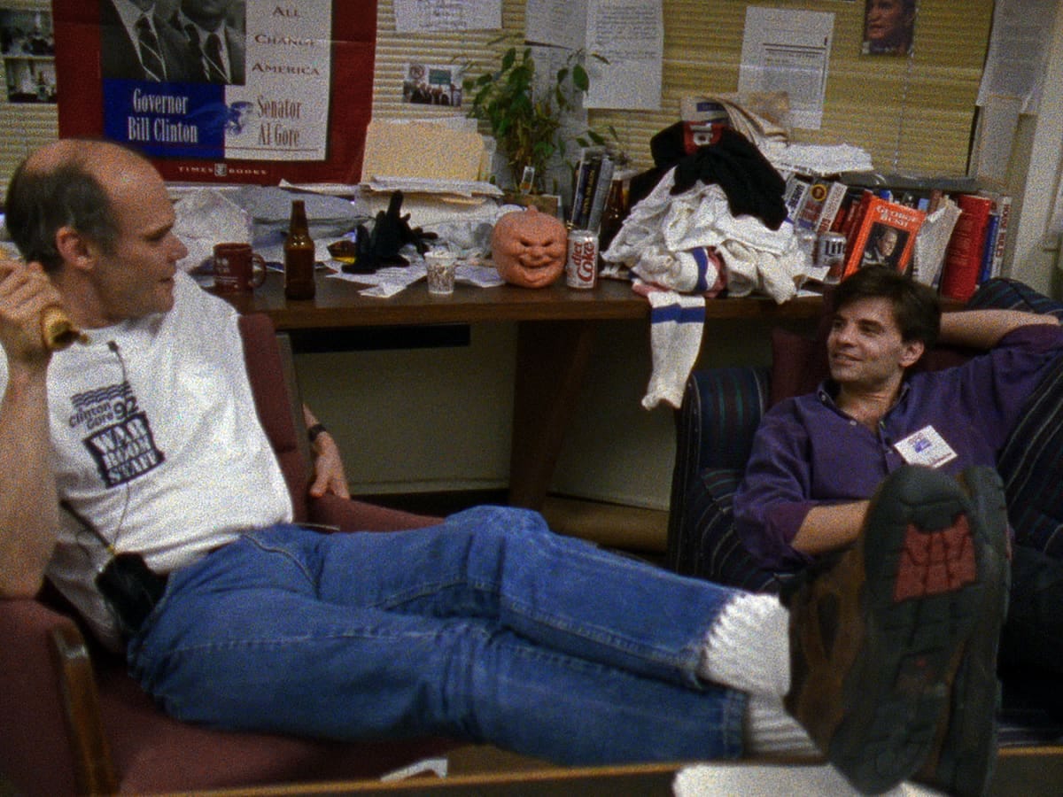 Scintillating documentary that depicts the Clinton election team as it works to get a Democrat into the Oval Office. Centering on the hard work of James Carville and George Stephanopoulos, the film reveals the goings-on backstage in the grand political show, their savvy personalities and intense campaign strategies working overtime to prove why Bill is the best for the job. Not even a sex scandal can deter this team as it takes on a very tough challenge in unseating George Bush from sitting a second term as President of the United States. Both Carville and Stephanopoulos are fascinating characters worthy of a West Wing episode, and the filmmakers are wise in choosing them as the film’s subject over their employer, whose personality is by now common knowledge. D.A. Pennebaker and Chris Hegedus’s exemplary film is sometimes a bit too soft on its subject, probably in light of it being edited and released following his electoral victory, but there’s still lots of juicy information to be learned.