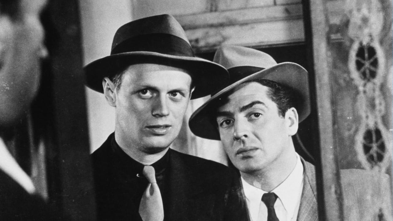 A man is murdered after leaving a bar with a few soldiers, getting Robert Mitchum pulled into police headquarters where Robert Young questions him about the incident. The lead suspect in the murder has disappeared, which means Young must ask questions about the night of the incident that inspire flashbacks, which eventually helps clear up the devastating motivation behind the killing itself. The search for the killer takes us into divey nightclubs, the dingy apartment of a taxi dancer (an unforgettable Gloria Grahame) and involves another soldier (Robert Ryan in his starmaking breakthrough) with a bad temper and even worse secrets. Shot like a film noir with stark, gorgeous cinematography that employs a great deal of focused points of light piercing through harsh dark backdrops (a technique actually chosen because it kept the budget low), this murder mystery investigates American bigotry and is wholly involving until a rather abrupt ending: movies of the forties generally undo the moral knot that has been tied and leave it at that, there’s no need to contemplate the undoing. The film deals with anti-Semitism (in place of the novel’s original theme, which dealt with homophobia), and became unpopular very quickly when director Dmytryk refused to name names to the HUAC in the earliest days of the Red Scare, earning the film’s creative team frosty treatment at the Academy Awards ceremony where it was nominated in five major categories; it lost to that more popular film on a similar subject, Gentleman’s Agreement, made by the far more HUAC-amenable Elia Kazan. Make sure to check out the Riviera Rats episode that discusses this film in January.